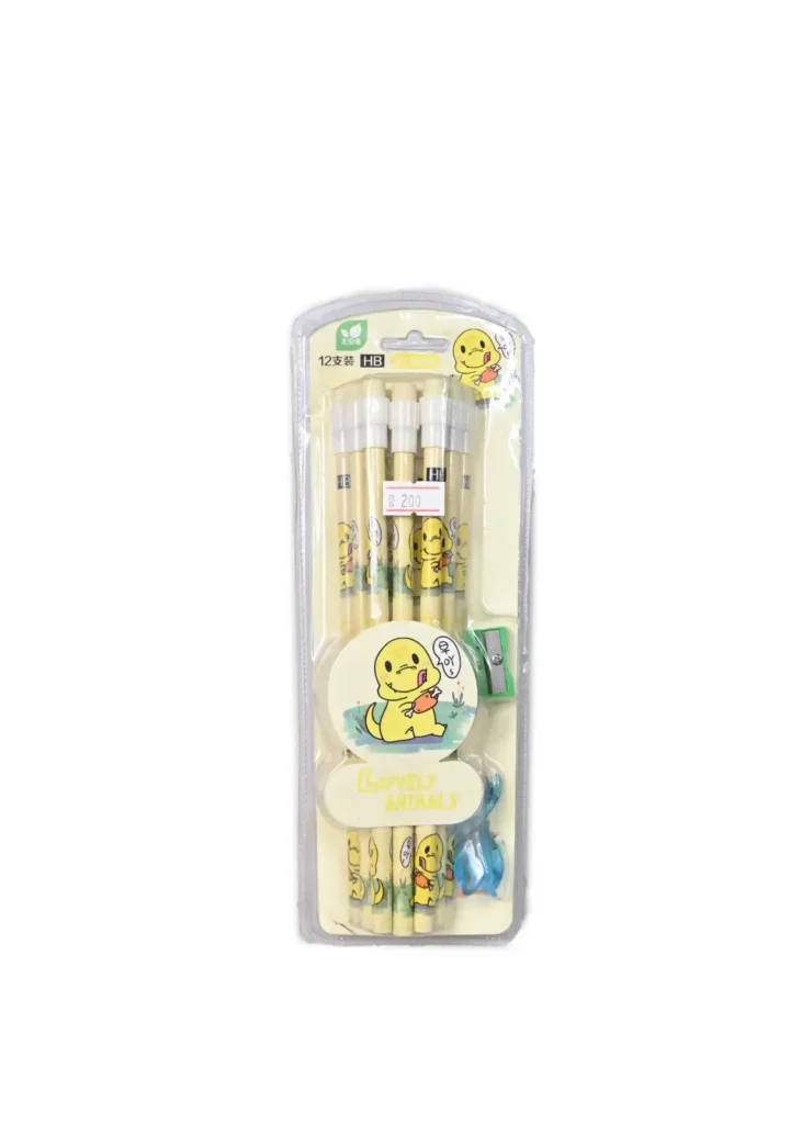 Cartoon Pencil with Rubber Tip Pencil (Set of 12, Yellow)