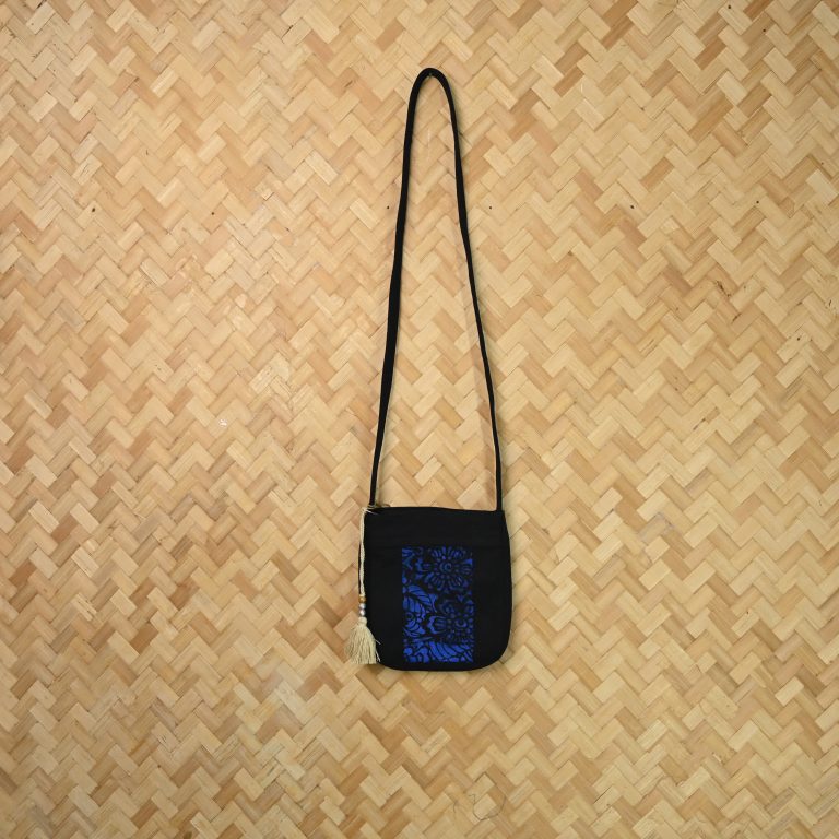 Zopar Blue Floral Embroidered Panel Handcrafted Sling Bag (Hand-Paint Exclusive Edition)