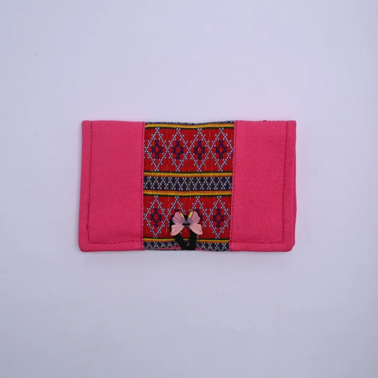 Zopar Handcrafted folk pink Bifold Pouch with Woven Panel