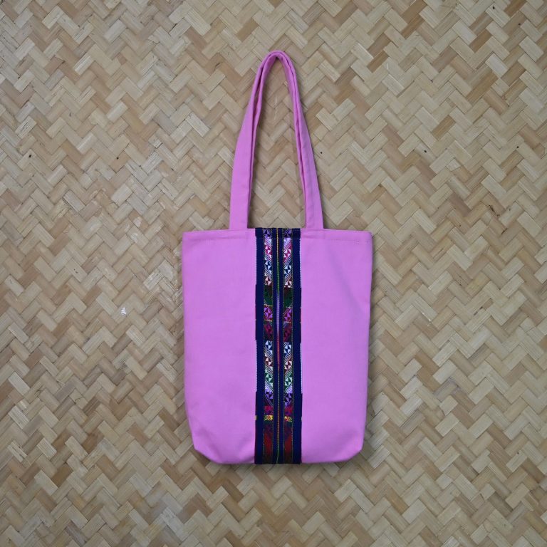 Mizo Heritage Stripe Pink Canvas Tote Bag, Handmade, Style Shoulder Bag.