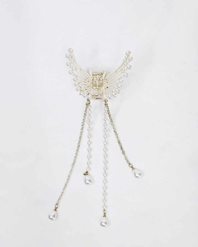 Trendy Club Pearl Butterfly Metal Hair Clutcher Clips for Women