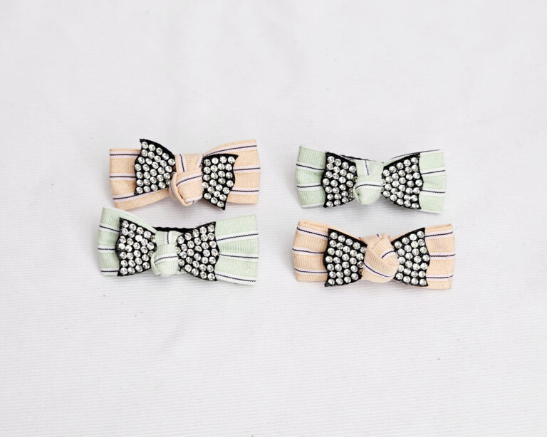 Striped Bowtie Hair Clip For Girls (2 Pairs)