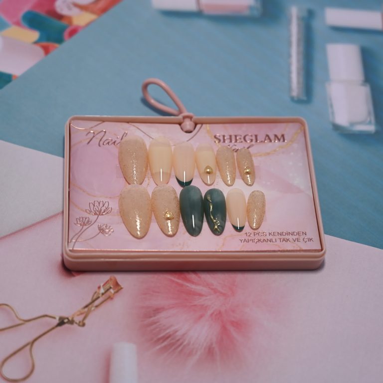 Golden Sage Elegance Sheglam Press-On Nails Set