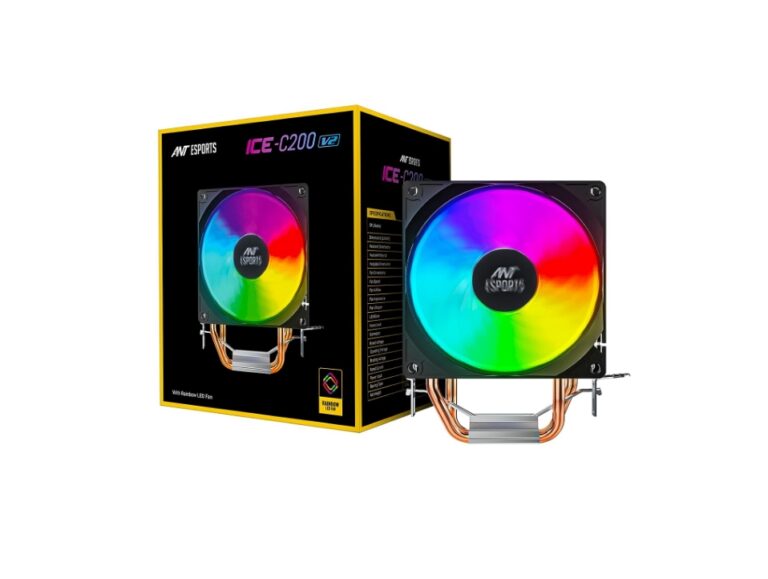 Ant Esports ICE-C200 V2 CPU Cooler/CPU Fan with Rainbow LED Fan | Support – Intel : LGA1700 / 115X / 1200/1366 x 775 & AMD : AM5, AM4, AM3+, AM3, AM2+, FM2, FM1