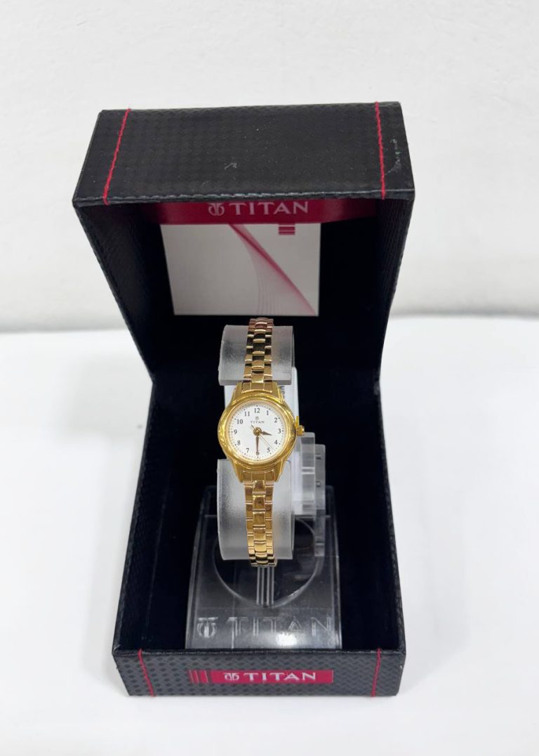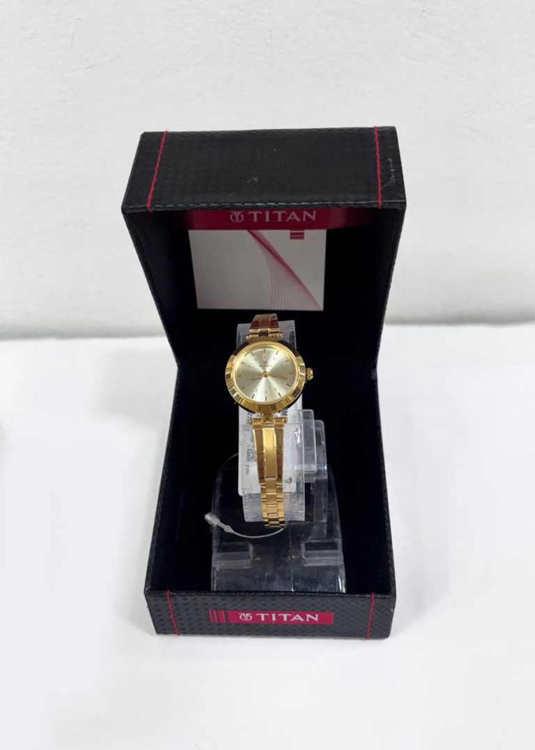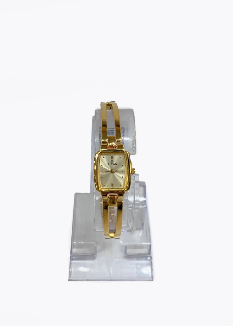 Titan Quartz Analog Champagne Dial Stainless Steel Strap Watch for Women