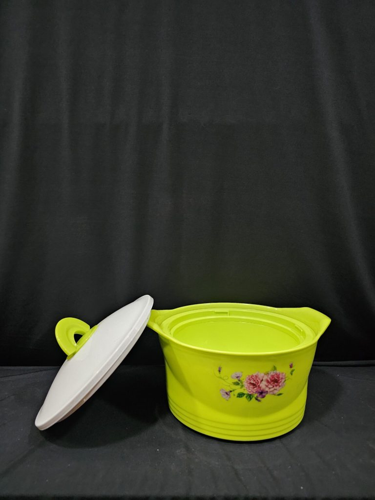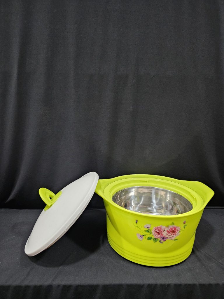 Floral Insulated Hot Pot – Lime Green Stainless-Steel Casserole | 850 ml