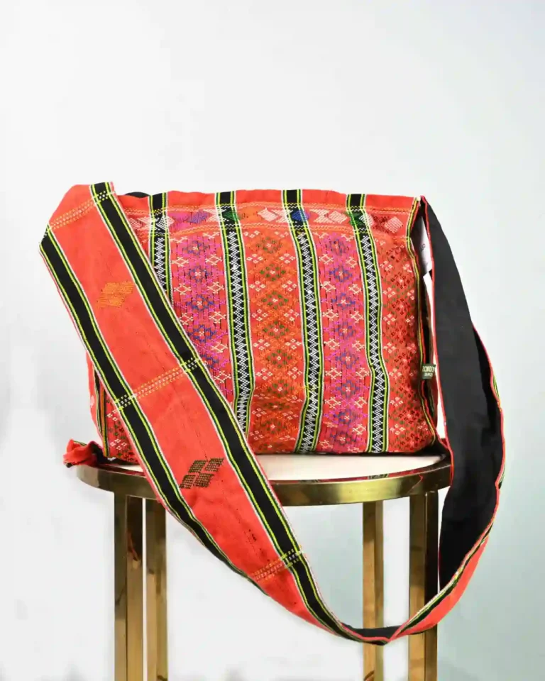 Handcrafted Mizo-Inspired Canvas Tote Bag- Vibrant Pink with Traditional Weave Accent