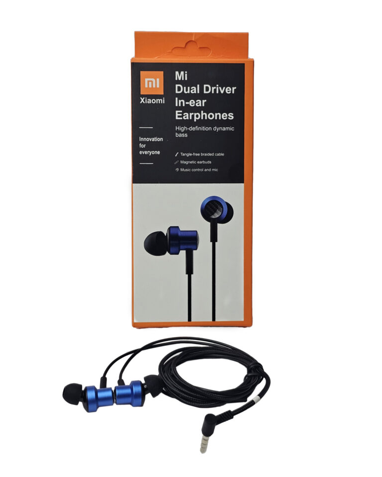MI XIAOMI Dual Driver Dynamic Bass in-Ear Wired Earphones with Mic, 10mm& 8mm for Heavy Bass & Crystal Clear Vocals, Passive Noice Cancellation, Magnetic Earbuds with Braided Cable (Blue)