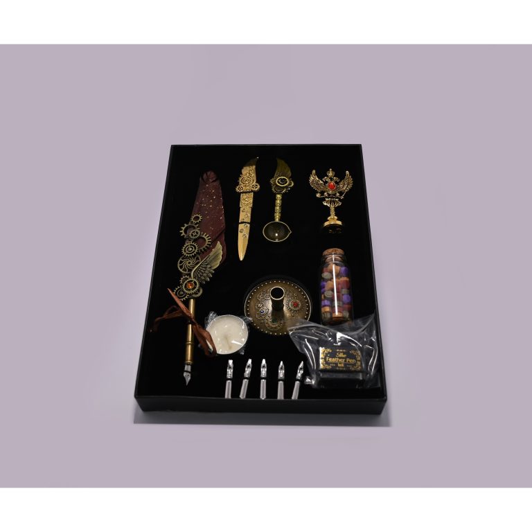 Marco Polo 13, Vintage Quill Feather Pen & Wax Seal Calligraphy Kit & Ink Set with Wax for Stamp Retro Decor Dip Pen Office Stationery Corporate Gifting for Signature, Blue Feather