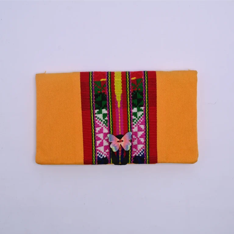 Zopar Exclusive Handcrafted Denim Pouch Wallet with Traditional Woven Stripe & Wooden Button Accent