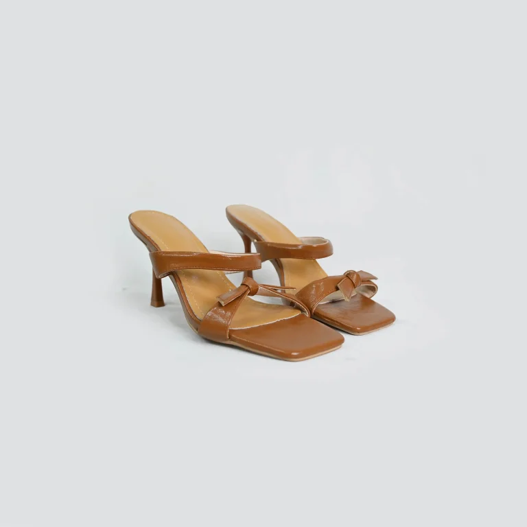 Chic brown knot strap square-toe heels for women. Stylish, comfy, and versatile mid-heel sandals, Size 36, (22.2 cm)
