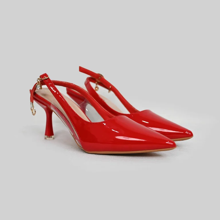LADAMAS Glossy Red Patent Slingback Pumps (Size: 37:27cm)