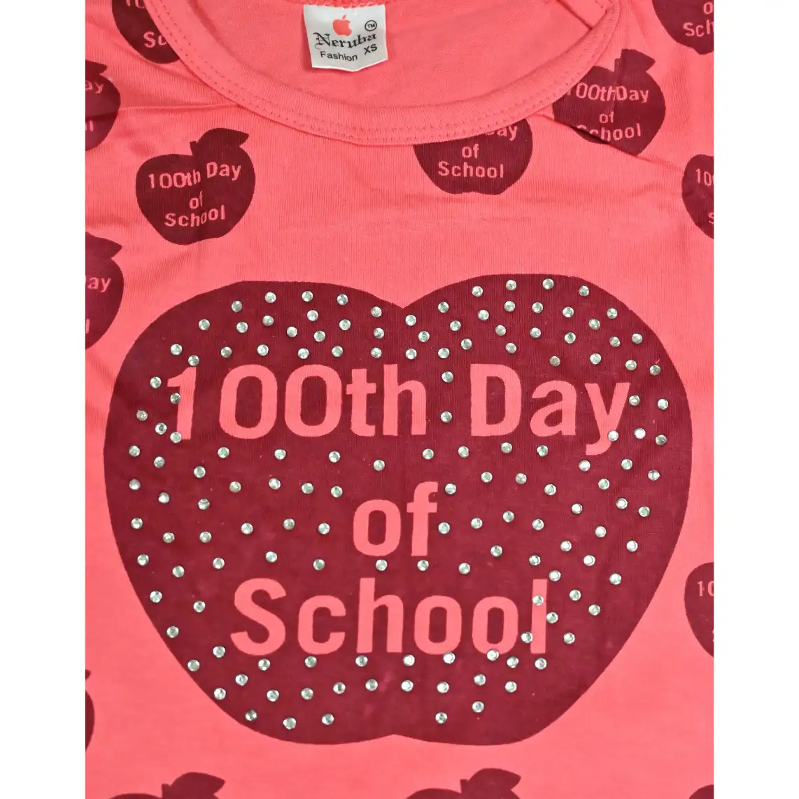 Celebrate your child’s 100th day of school in style with this adorable pink t-shirt! Featuring a playful apple print and the celebratory “100th Day of School” message in a heart, this shirt is perfect for commemorating this special milestone. Made from soft and comfortable cotton, it’s ideal for all-day wear. Pair it with jeans or leggings for a complete look.