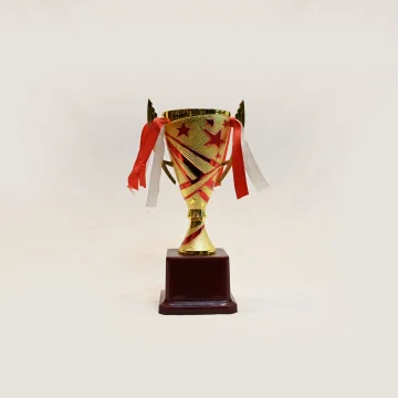 Gold Star Triumph Trophy with Red & White Ribbons, 7.5 inch Height