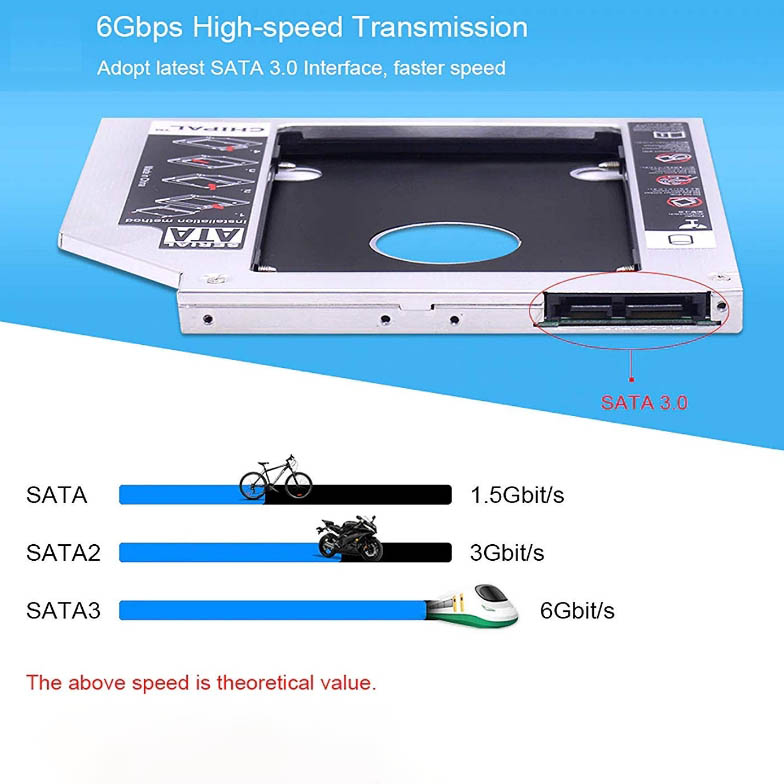 4 D (LABEL) Universal 2nd HDD Caddy 9.5mm SATA 2.0 Slim SATA III Hard Drive Optibay Adapter for Laptop CD DVD Optical Drive Bay