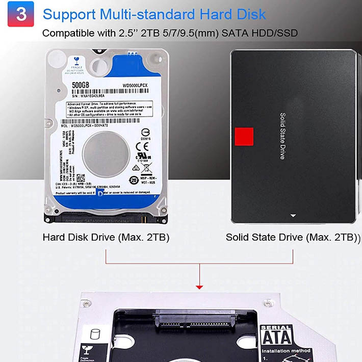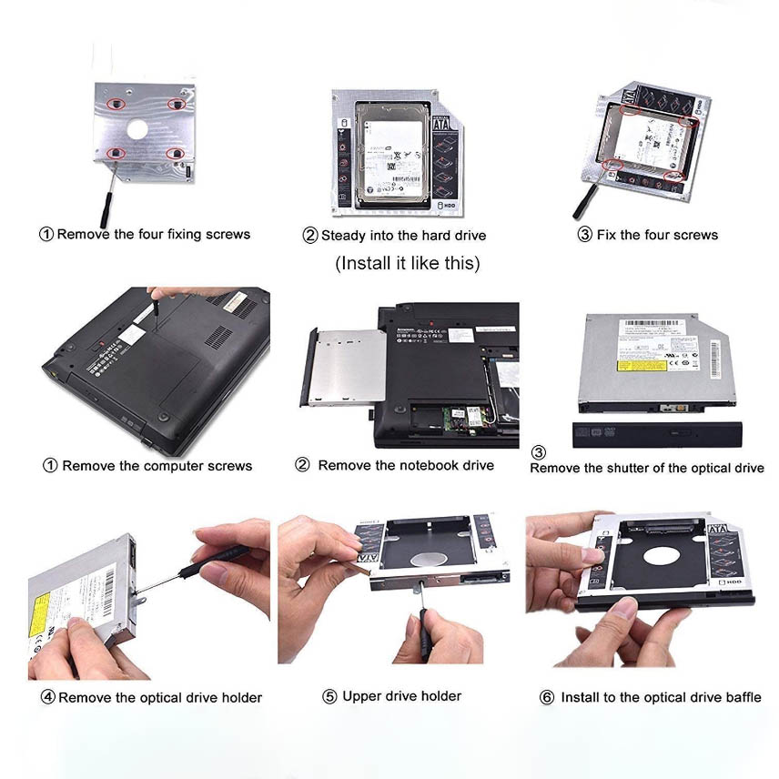 - Compatible with: 2.5″/9.5mm SATA HDD or SSD, hard drive not include, 100 percent brand new 9.5 mm-thick caddy