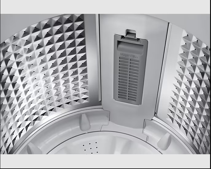 Removes lint even at low water levels and protects the drainage from getting clogged up. The Magic Filter with a dual mesh – at the front and back – effectively gathers the lint, fluff and particles that come out of your laundry. And it is easy to clean the filter as it opens 180°.