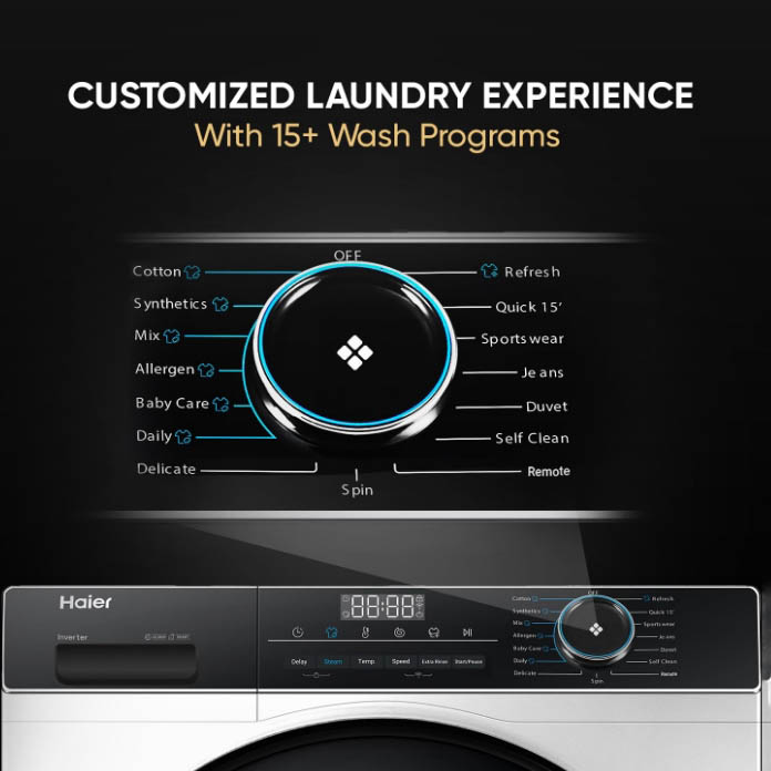 Haier 7 Kg 5 Star Rated, Fully Automatic Front Load Washing Machine with Inverter Direct Motion Motor, White (2023 Model)(HW70-IM12929)