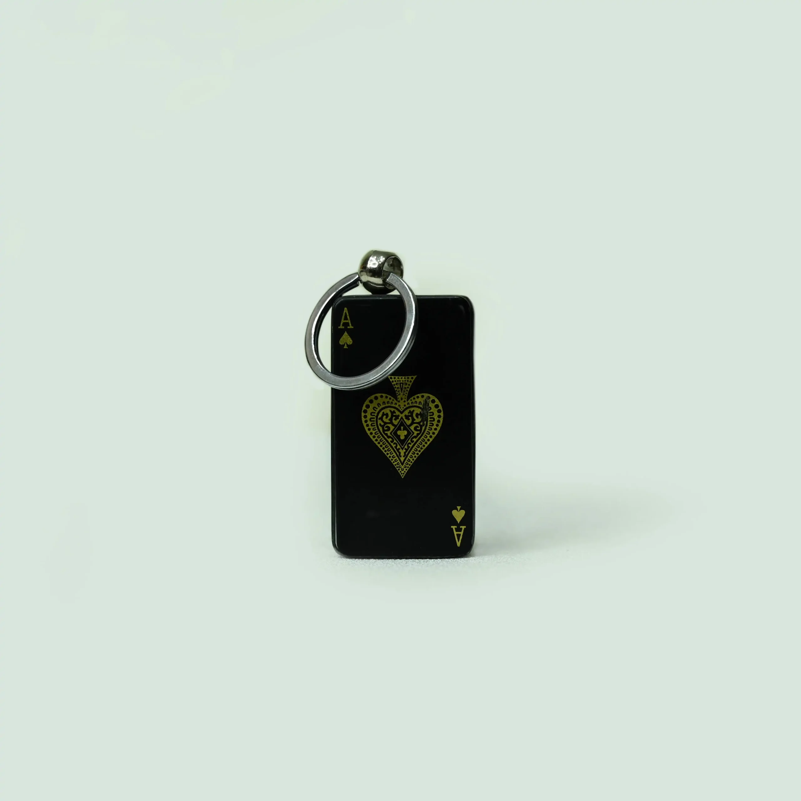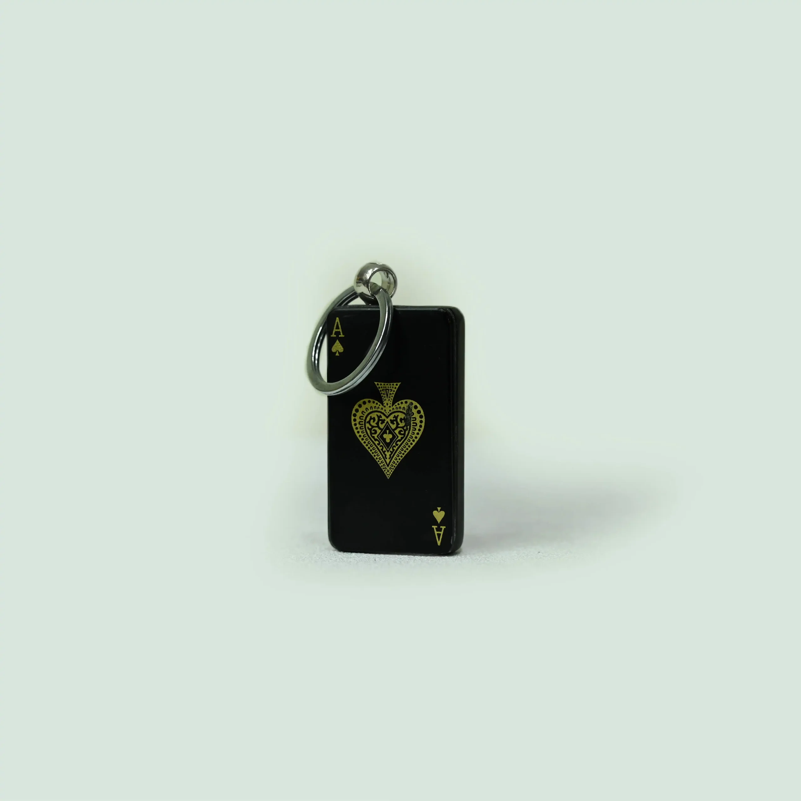 - The object’s body is a deep, glossy black. The spade is highly stylized with swirls and patterns within its outline, giving it a somewhat ornamental or vintage feel.