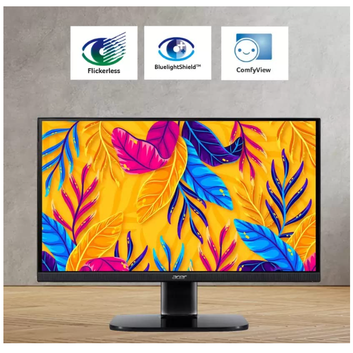 - Acer Bluelight Shield technology and Flickerless technology in this monitor keep your eyes protected from unnecessary strain, thus providing comfortable viewing. And, courtesy of Acer ComfyView and Low Dimming, it reduces glare and eye fatigue, thereby allowing you to watch for a long time.
