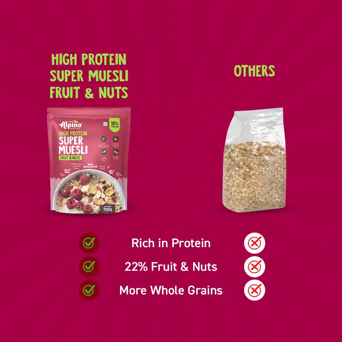 Alpino Super Muesli is a Breakfast Cereal the Primary Ingredient of which is Rolled Oats, which is set to Soak Overnight and Eaten the Next Morning, Additional Ingredients such as Whole Grains, Dried Fruits, and Nuts, are Added. Alpino Super Muesli has Less Sugar and Fewer Calories than Pastries and Breakfast Sandwiches. Additionally, Raw Oats contain a Ton of Resistant Starch, making Muesli an Extremely Filling Breakfast that takes a Long time to Digest. As the Resistant Starch is Broken Down in Your Stomach, Digestive Acids that Suppress Your Appetite are released and Your Metabolism Speeds Up, so You’ll Burn More Calories in Less Time.