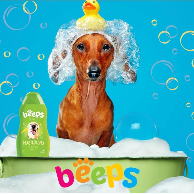- Product Description: Beeps Puppy Shampoo (with partial usage instructions visible).