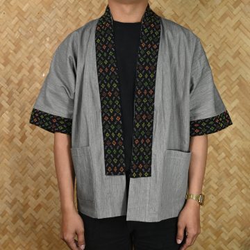 Mizo Ash Grey Handwoven Trim Off Shoulder Shirt Coat (Exclusive Product)