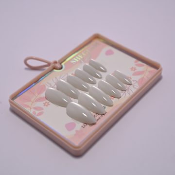 SHEGLAM “Love Yourself” Almond Press-On Nail Kit, A bright, creamy white with a subtle pearlescent