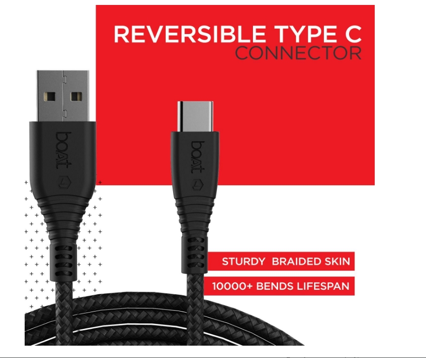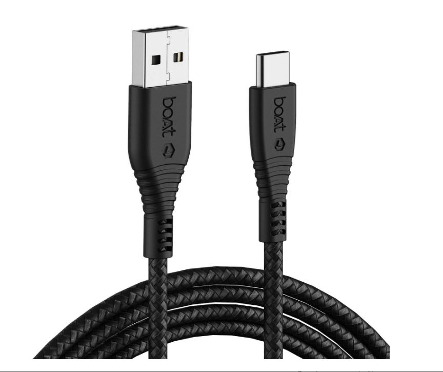 BoAt Type C A325/A320 Tangle-free, Sturdy Type C Cable with 3A Rapid Charging & 480mbps Data Transmission(Black)