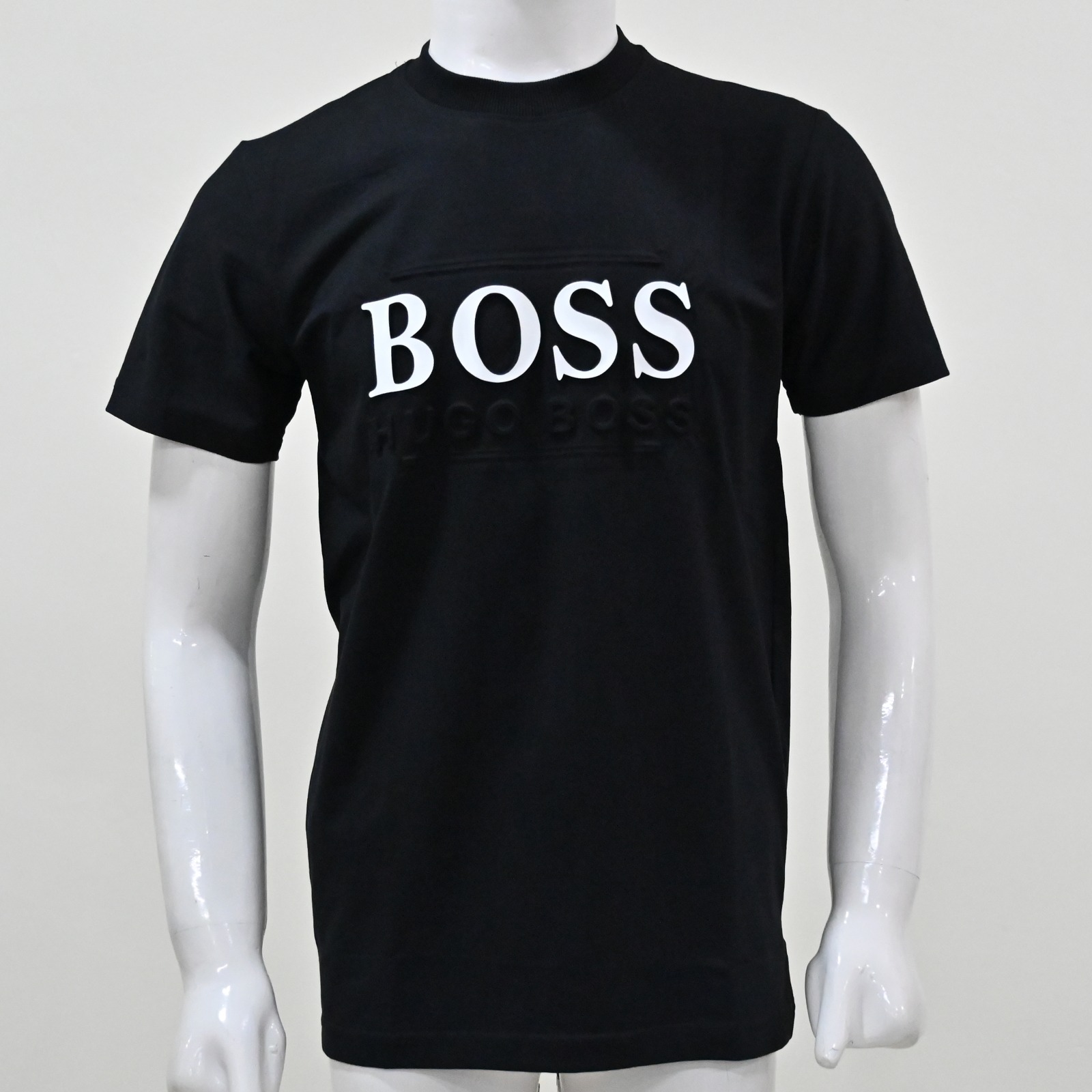 - The focal point of the garment is the prominent “BOSS Hugo Boss” branding across the chest.