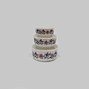 Floral Printed Plastic Bowl with Lid – Rose Design
