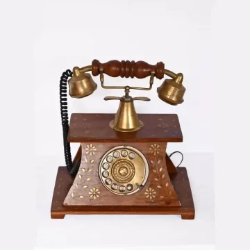 Old Classic Telephone Wooden Carving (Non Working) Telephone Decor Gift