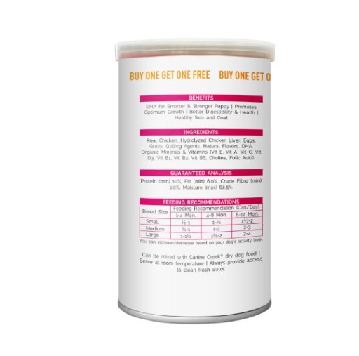 Canine Creek real chicken in gravy offer your puppy fresh and tasty wet food at every meal. This great-tasting puppy food contains a high-quality omega 3 fatty acid to support your puppies brain & eye development. This pack contains mouth-watering flavour, so you can give your puppy a balanced diet with delicious and healthy. Your pet will love the gravy, which provides all the nutrients to fulfil your pet needs for a healthy life.