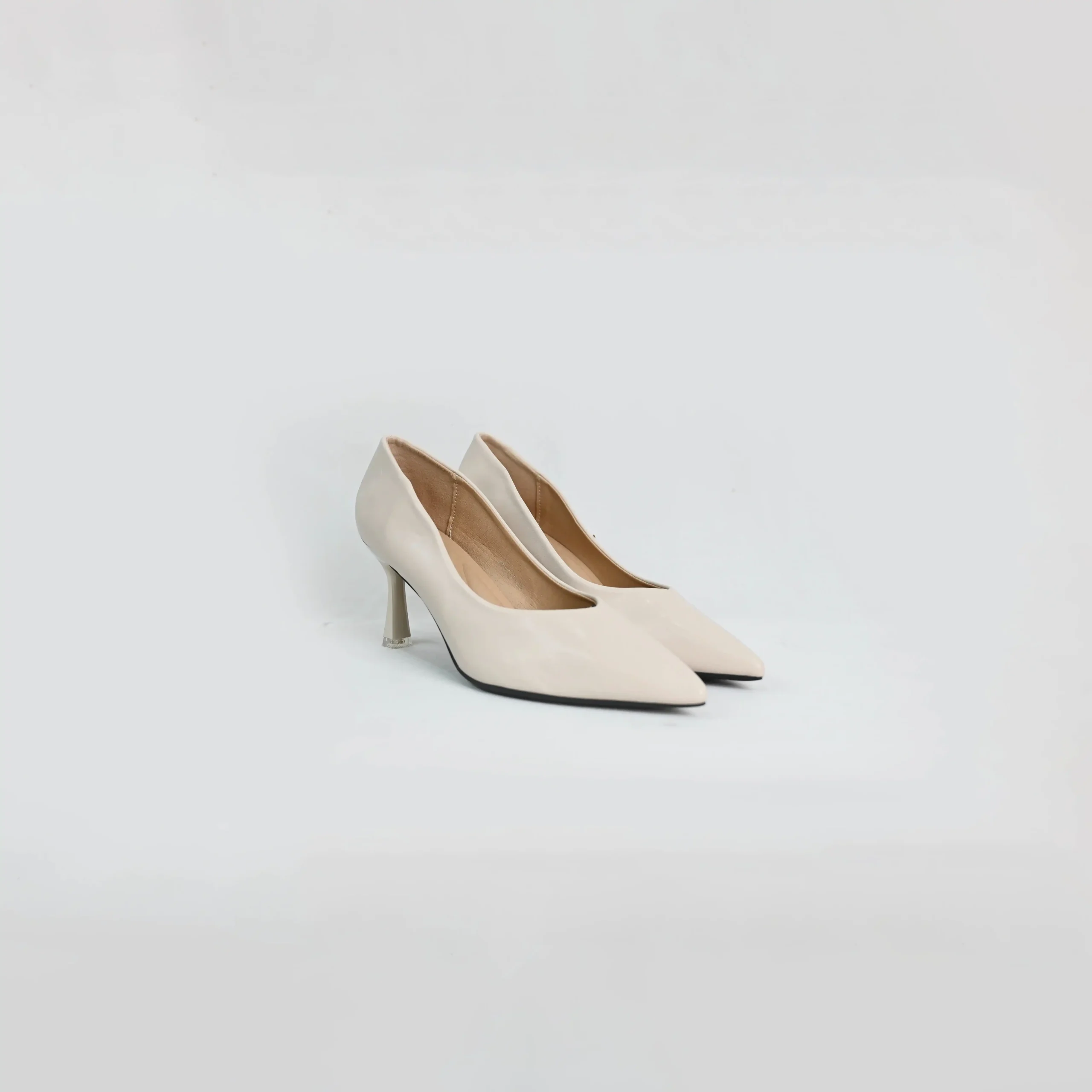 Classic Beige Pointed-Toe Heels, Heels for women, formal shoes for women, Size 38, (23.8 cm)