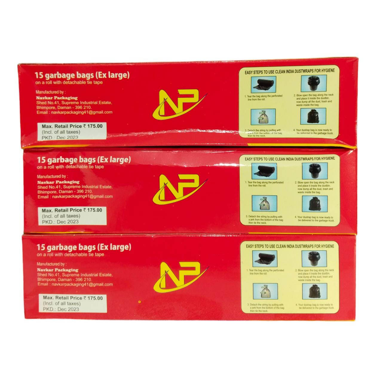 Clean India Black Garbage bag Extra Large Size combo | Pack of 3 Roll | 45 Bags | 76x94cm | 30x37in | compostable | biodegradable | Suitable for Home Kitchen Toilet Office Dustbin
