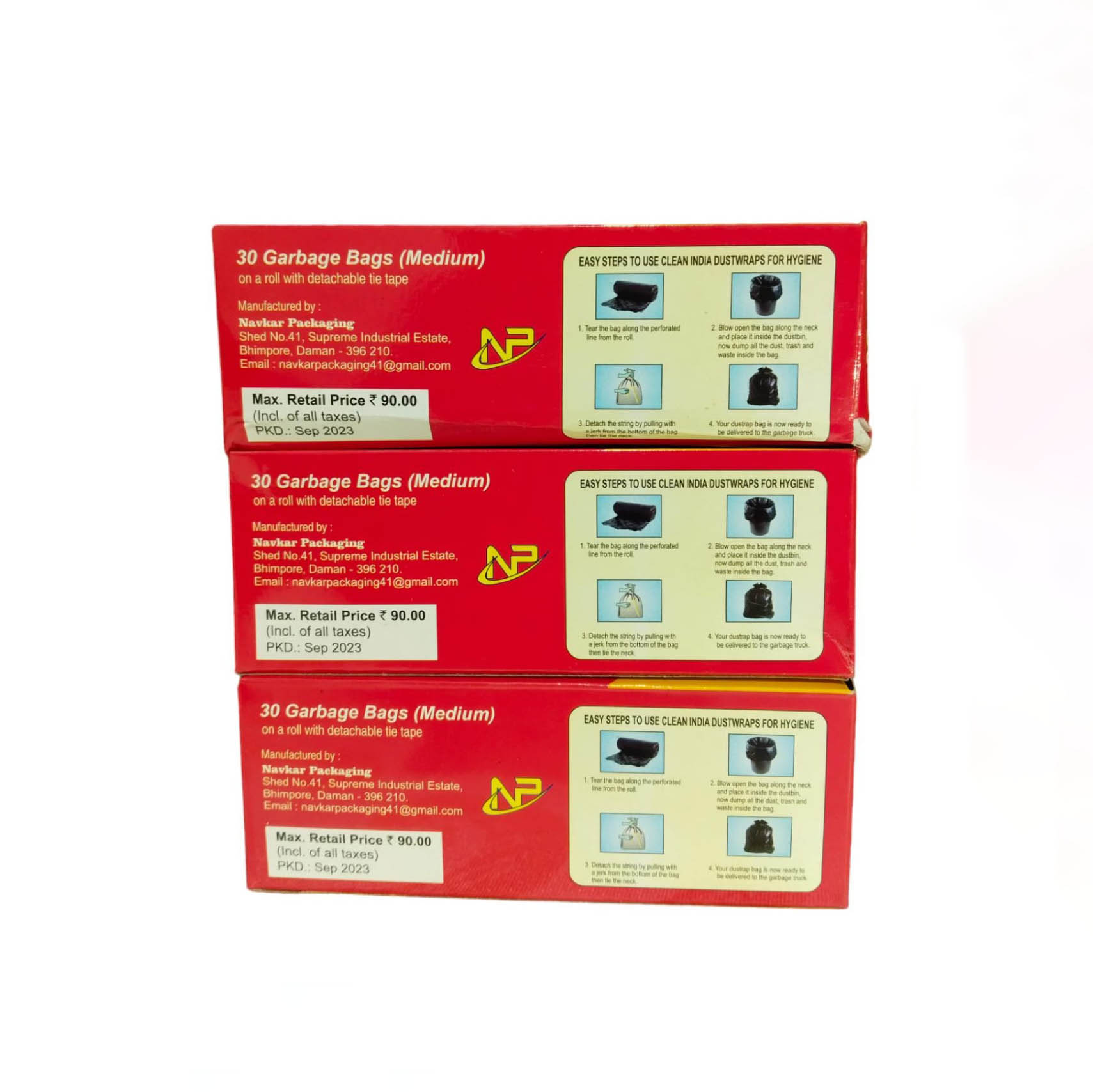 Clean India Black Garbage bag Medium Size combo | Pack of 3 Roll | 90 Bags | 48x56cm | 19x21in | compostable | biodegradable | Suitable for Home Kitchen Toilet Office Dustbin
