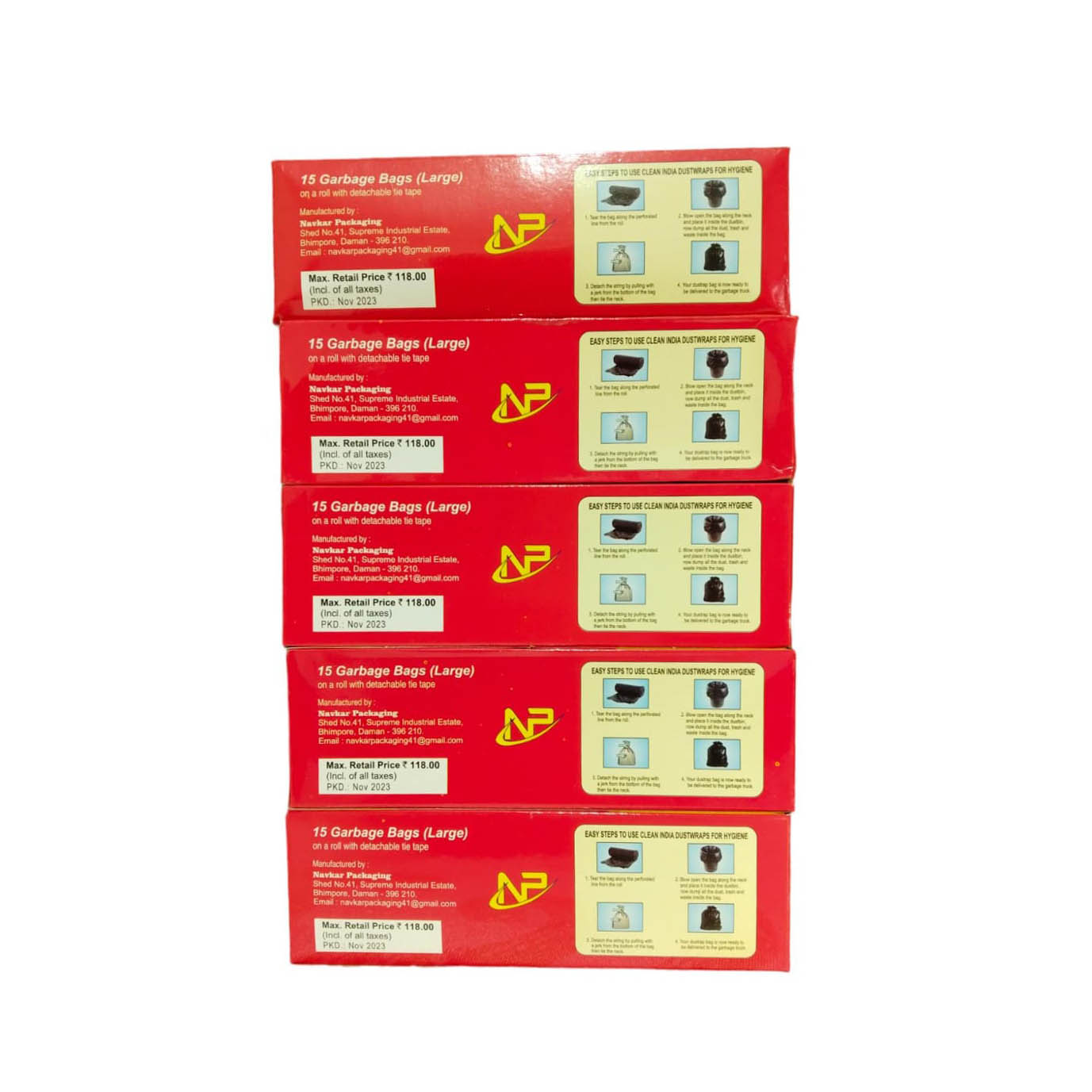 Clean India Black Garbage bag Large Size combo | Pack of 5 Roll | 75 Bags | 60x81cm | 24x32in | compostable | biodegradable | Suitable for Home Kitchen Toilet Office Dustbin