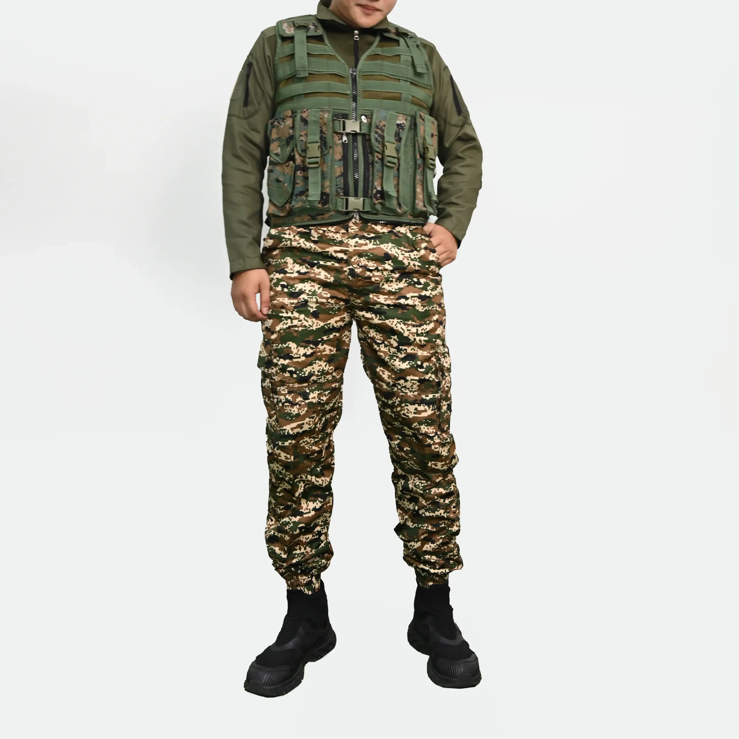 The Combat Ops Tactical Wear Set combines durability and functionality for both professional and casual use. This set includes a high-quality tactical vest, a comfortable army polo casual shirt, and camouflage cargo pants crafted from premium fabric for long-lasting performance. Designed for mobility and protection, it is ideal for outdoor activities, training, and tactical operations.