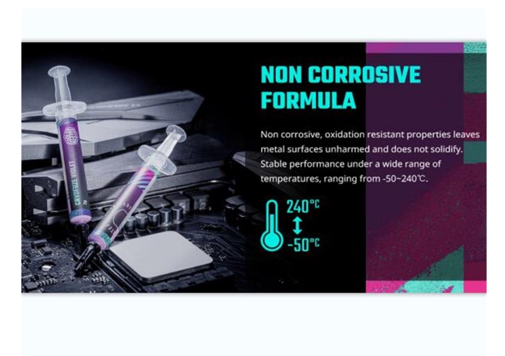 - Purple Tinted Compound – Purple tinted thermal compound utilize nanoparticles developed by thermal engineers for superior composition.