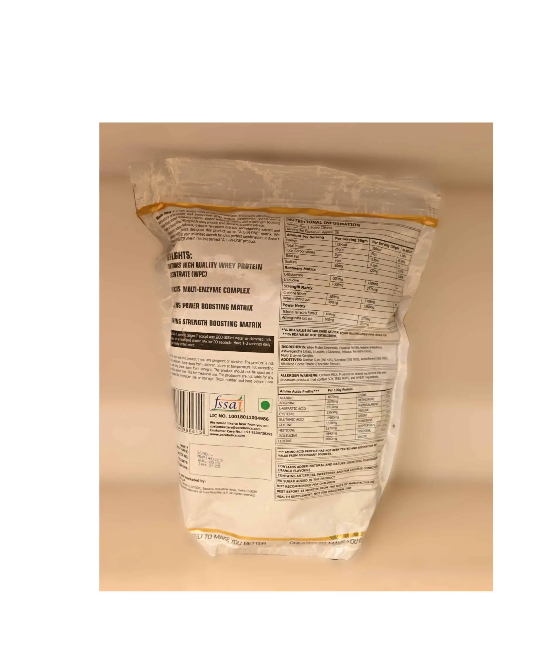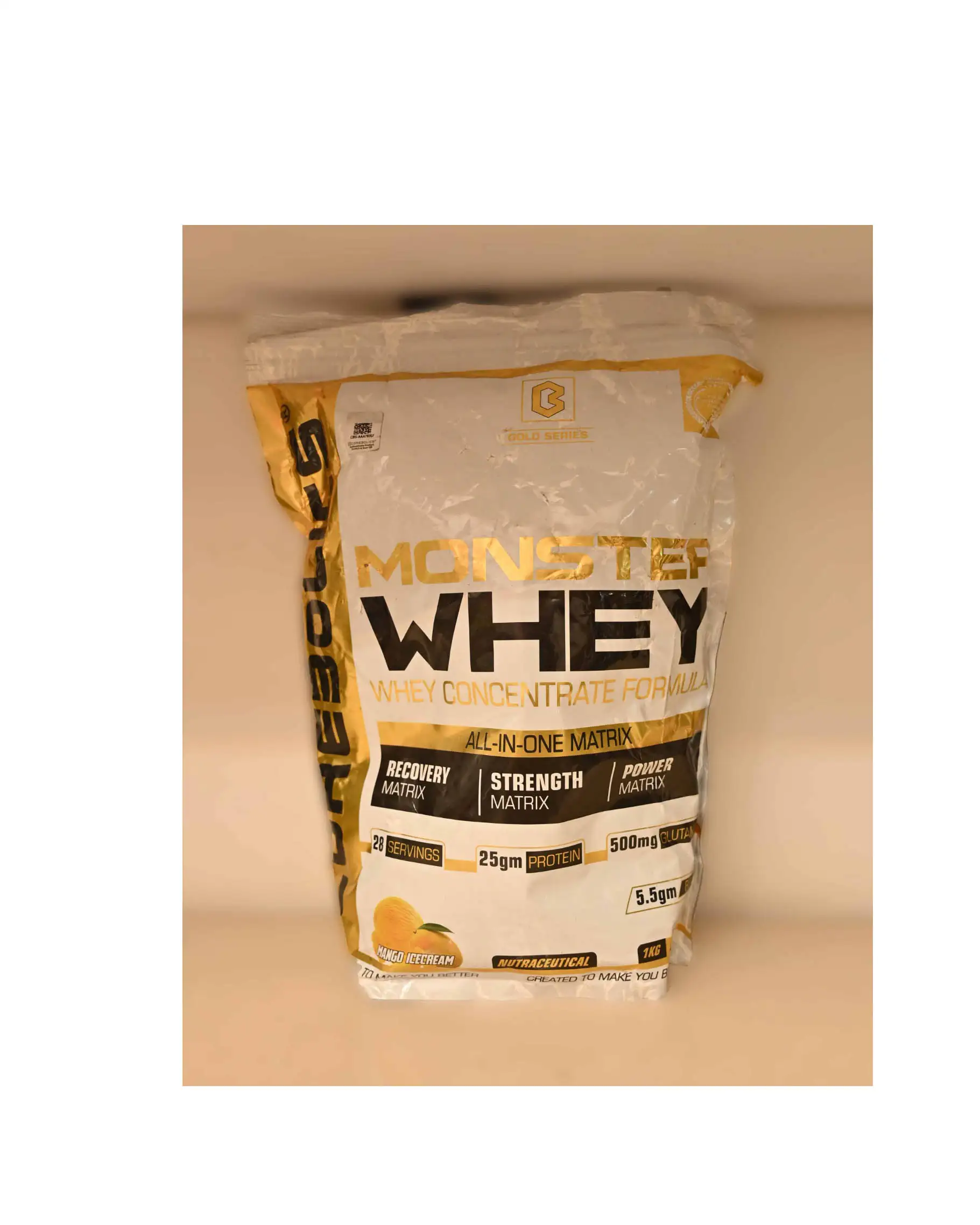 Product Details : Monster Whey is a high quality whey protein supplement. It contains ultrafiltered low temperature processed and instantized whey protein concentrate (WPC) with a recovery matrix, power matrix and a strength matrix. ‘Monster Whey’ along with whey protein also delivers, creatine nitrate, l-glutamine. Corebolics designed this product as an “ALL-IN-ONE” matrix. We hereby provide an end to your unlimited search for that perfect combination. It doesn’t get better than MONSTER WHEY. This is a perfect “ALL-IN-ONE“ product. HIGHLIGHTS: • CONTAINS HIGH QUALITY WHEY PROTEIN CONCENTRATE (WPC) • CONTAINS MULTI-ENZYME COMPLEX • CONTAINS POWER MATRIX • CONTAINS STRENGTH MATRIX DIRECTIONS: Mix 1 serving 36gm (1scoop) with 200-300ml water or skimmed milk. Use a blender or a hand held shaker. Mix for 30 seconds. Have 1-3 servings daily depending on daily protein need.