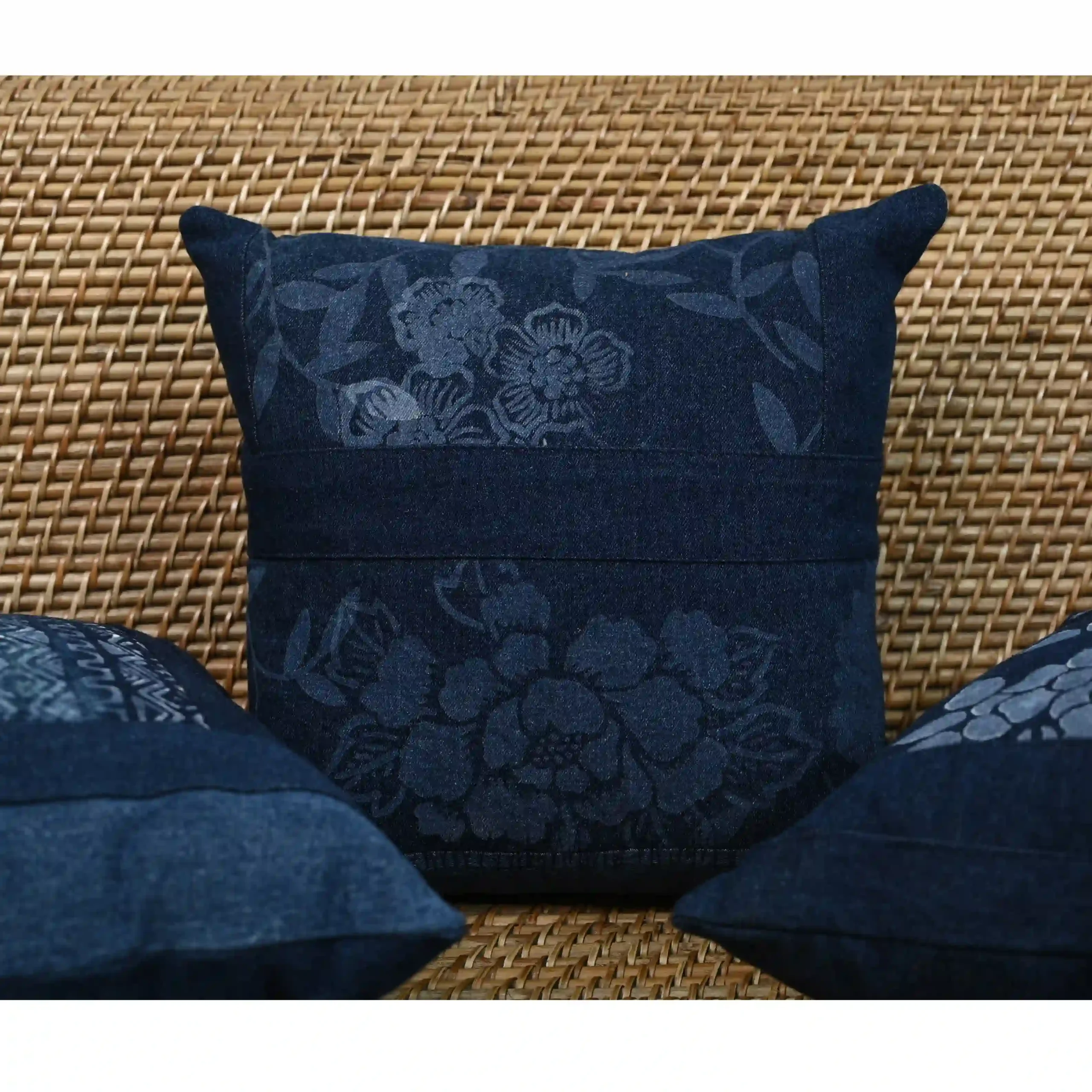 The Deep Indigo Still Bloom Throw Pillow is defined by its rich indigo tone and softly layered floral detailing. The muted patterns emerge subtly across the surface, creating depth without excess. Balanced with clean panel detailing, this pillow brings a sense of calm sophistication to living rooms and bedrooms alike. Perfect for those who appreciate understated design, natural textures, and timeless style.