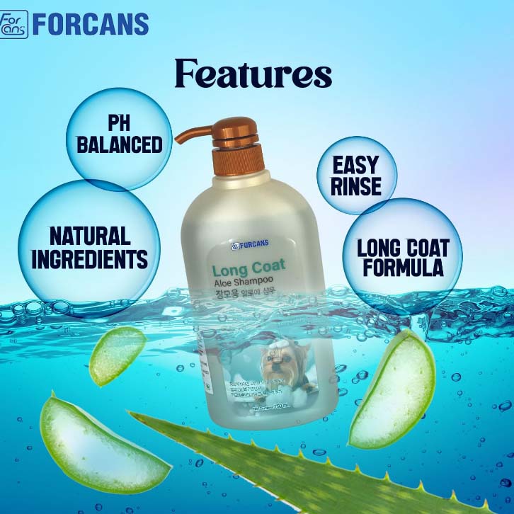 - The Forcans Long Coat Aloe Shampoo for Dogs nourishes and hydrates the pet’s skin and coat to prevent shedding and leave them healthy and soft.