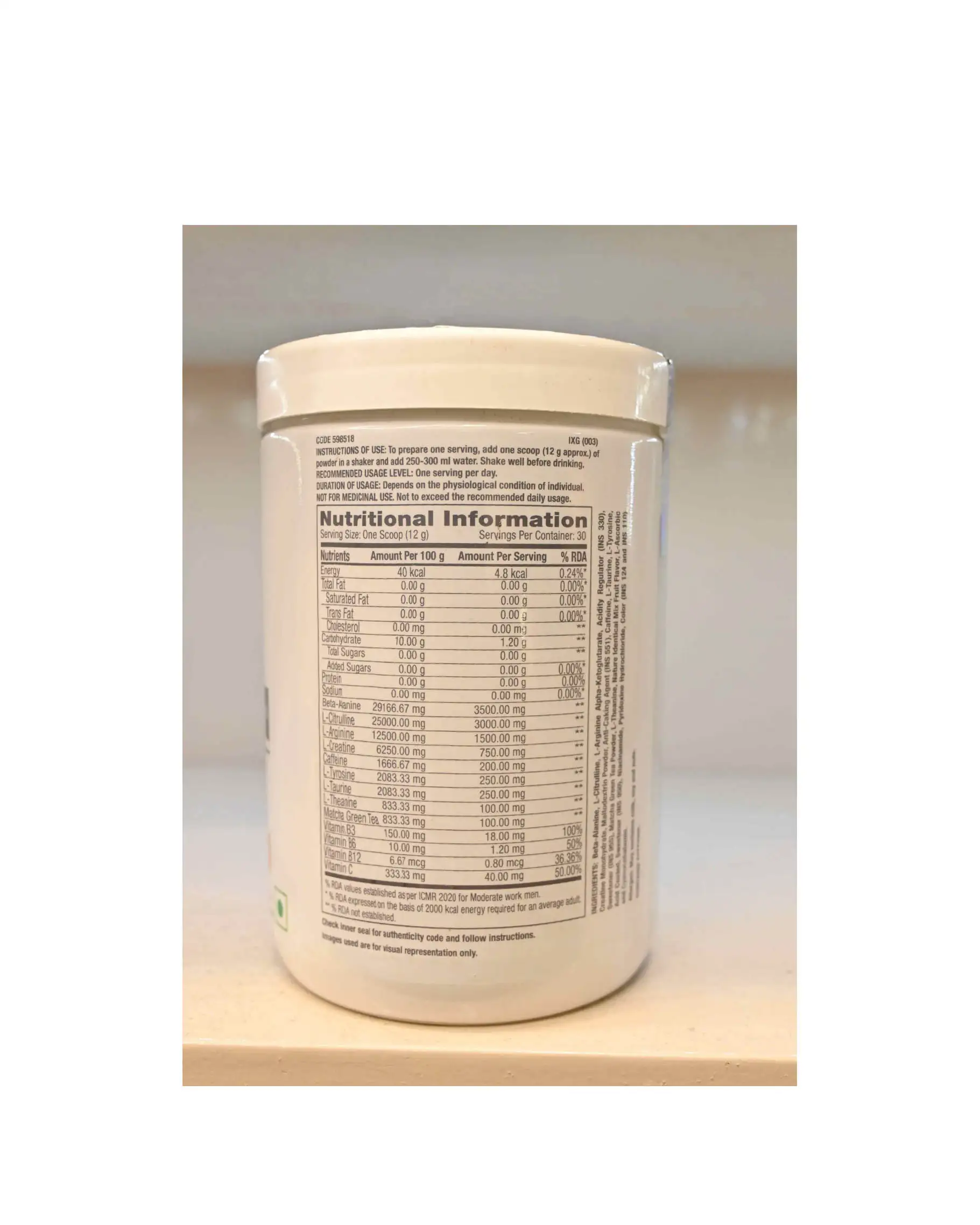 Product Details: Form: Powder Vegetarian Usage Pre-workout Protein Type: Pre Workout Dietary Preference: Sugar Free Flavour – Fruit Punch Description Discover the ultimate push for your training with the GNC Pro Performance Pre-Workout Supplement. Formulated to power up your body and mind for a tougher routine, this superior pre-workout is made with a superior combination of clinically potent ingredients that collectively function as a power-packed fuel to shoot up your exercise performance and muscle gains. GNC’s Pre-Workout powder contains L-Arginine and L-Citrulline, which level up the Nitric Oxide yield to increase the flow of oxygen and blood towards muscles. This improved flow, in turn, ensures an uninterrupted energy supply and endurance boost to let you train harder without crashing. This powerful Pre-workout powder is enriched with Beta-Alanine & L-Creatine to speed up your muscle recovery and build your athletic strength to the highest level. It prevents fatigue from setting in and keeps you consistent all the way through the training. GNC’s Pre-Workout formulation also includes an optimum dose of Caffeine to help you stay completely alert and focussed on the workout task. Plus, it is packed with biologically crucial amino acids L-Tyrosine, L-Theanine, and L-Taurine, which amps up your nervous system to maintain the peak performance. This Pre-Workout powder is also formulated with a potent pair of antioxidants Beta-Alanine and Matcha Green Tea to prevent soreness and stop free radicals from damaging your muscles. To preserve the muscle performance intensity, GNC’s Pre-Workout is loaded with Vitamins B3-B6-B12 along with Vitamin C to maintain high-energy levels and provide the nutritional aid required for the bodybuilding process. It also contains L-Tyrosine, L-Theanine, and L-Taurine, which sustain the vitality to keep your mind and body occupied in the training. GNC’s Pre-workout supplement is an absolute delight for your taste buds. It comes in multiple delicious flavours that will make every sip worth savouring. Moreover, it is free from added sugar for healthier consumption.