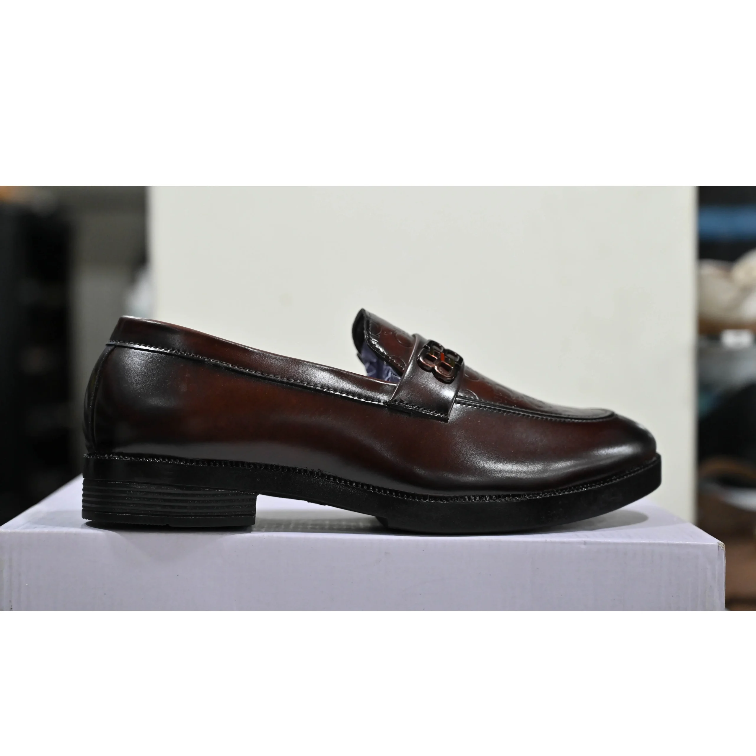 Features a metal bit (similar to horsebit or buckle detailing) across the vamp — often used in luxury or designer-inspired loafers.