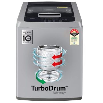 LG 6.5 Kg Fully Automatic Top Loading Washing Machine, 5 Star Inverter Turbodrum , 3 Smart Motion, Tub Clean, Middle Free Silver (T65SKSF4Z)