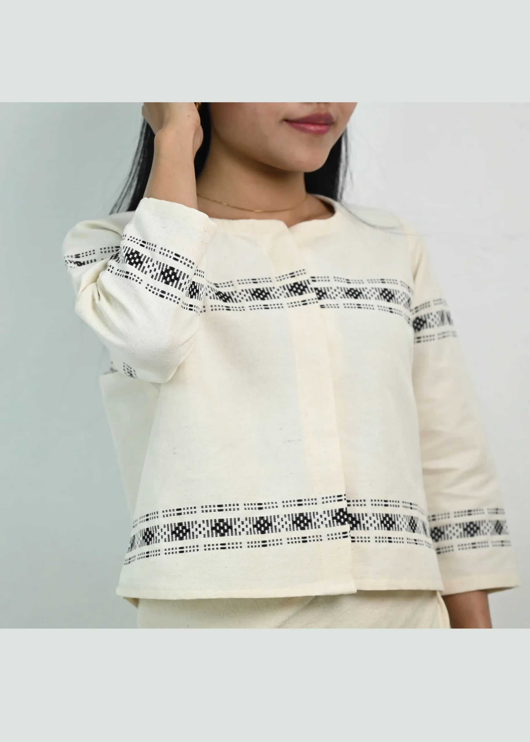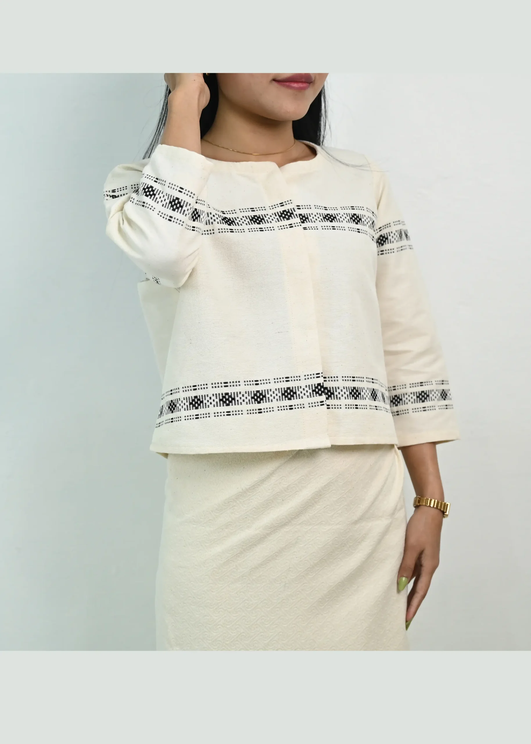 This set is the perfect bridge between heritage and modern fashion. While traditional Mizo dresses are often vibrantly colored, this monochrome Tual Kawr offers a versatile, understated elegance that stands out in any setting.