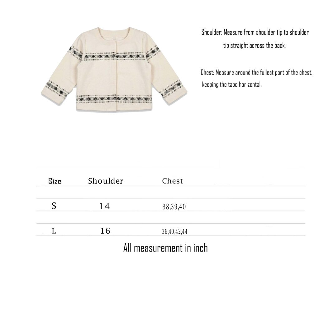 - Small : Shoulder -14 inch , Chest – 38,39,40 inch