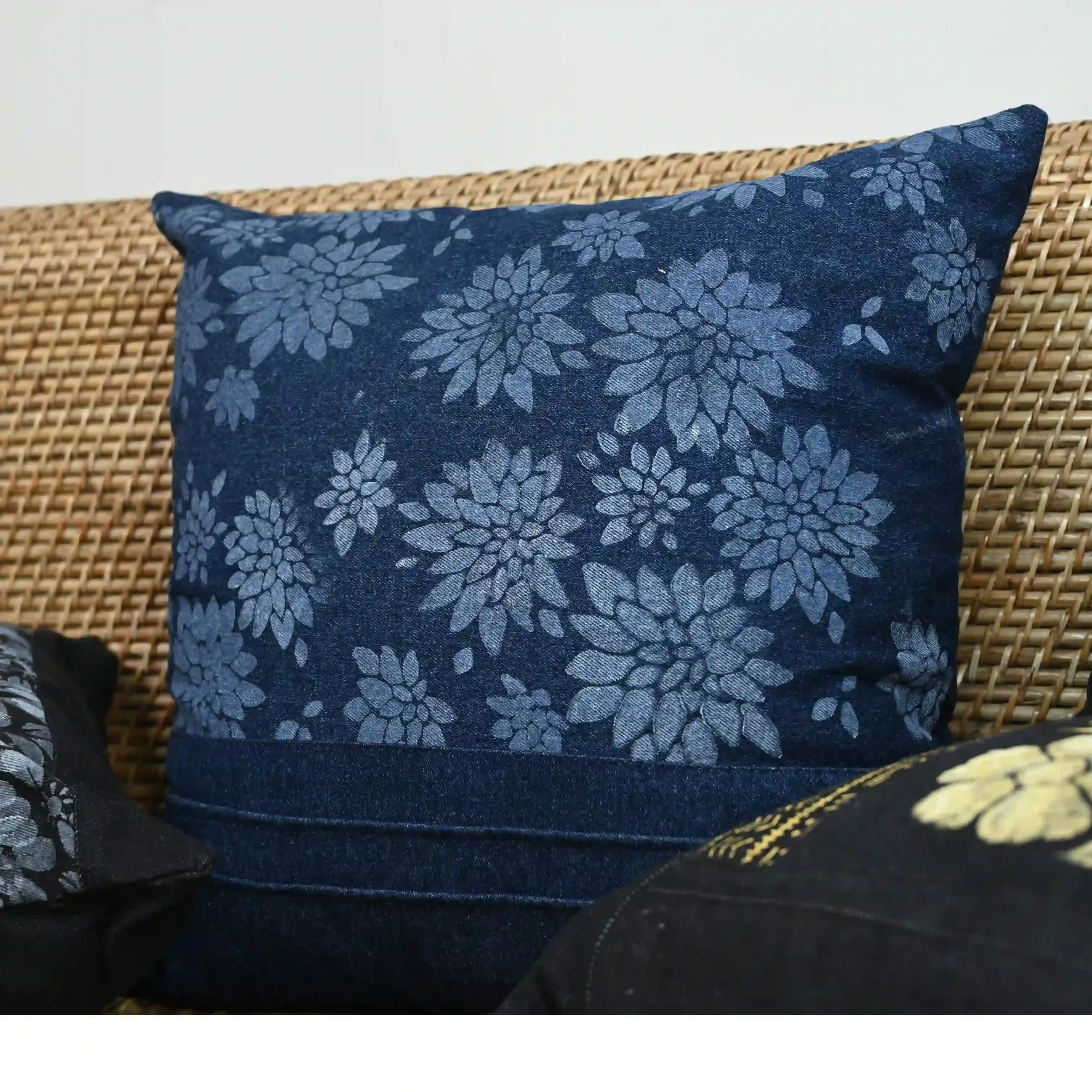 Handmade Hand-Painted Floral Cushion Cover – Exclusive Blue Designer Piece