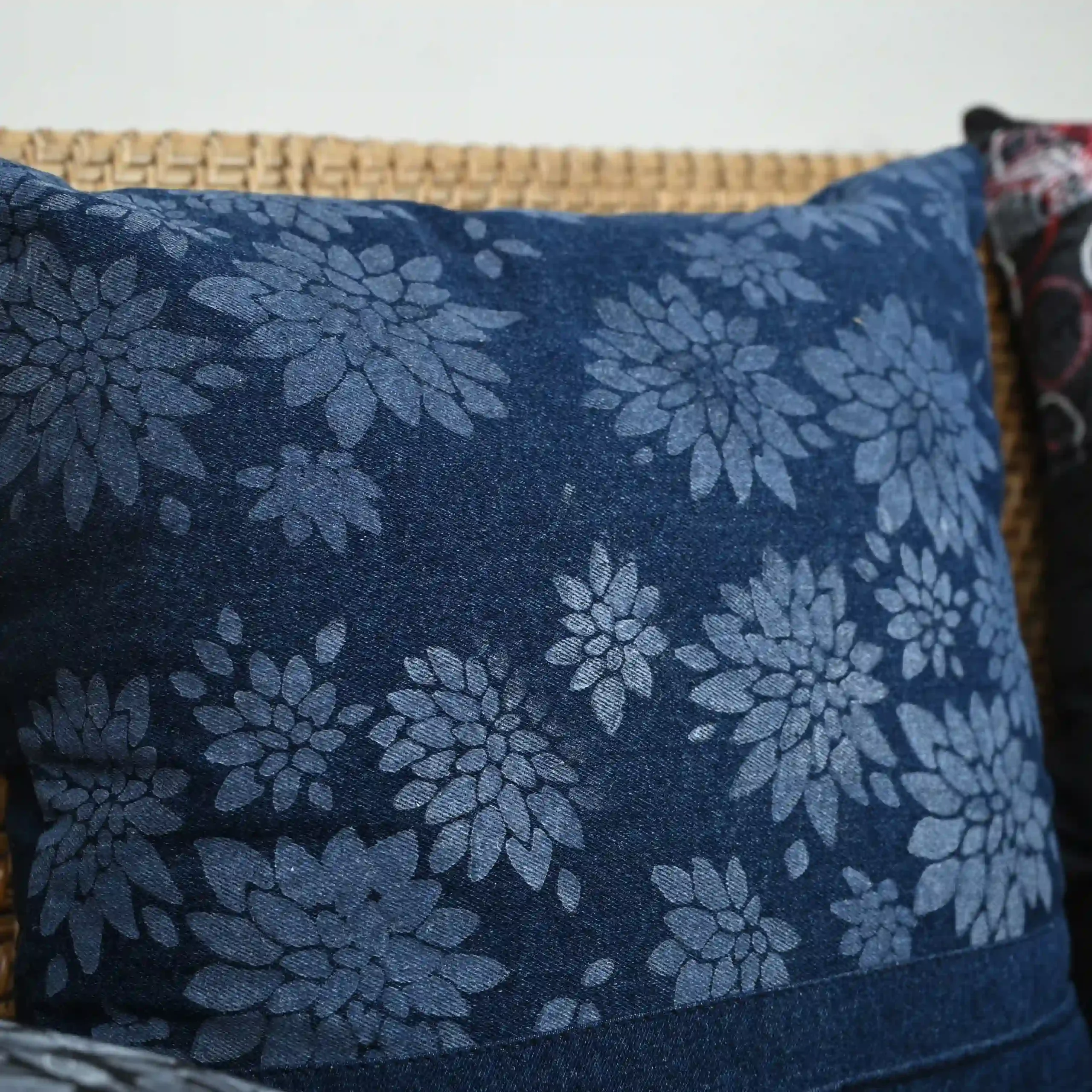 Add a touch of artistic elegance to your space with this exclusive handmade cushion cover. Crafted from sturdy fabric and detailed with hand-painted floral patterns, each piece is unique and made with care. The rich blue base and subtle flower design make it perfect for modern, rustic, or ethnic home décor themes.