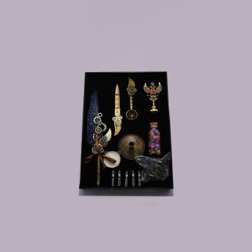 Marco Polo 13, Vintage Quill Feather Pen & Wax Seal Calligraphy Kit and Ink Set with Wax for Stamp Retro Decor Dip Pen Office Stationery Corporate Gifting for Signature, Blue Feather